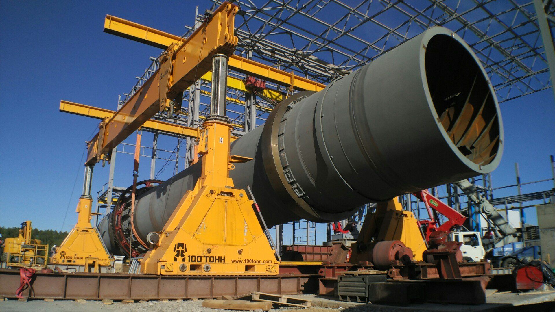 — Янки-цилиндр требовалось установить на втором этаже здания. Сначала в стесненных условиях на отметке +4,8 м собрали портальную систему, затем подняли агрегат, переместили по рельсам и установили вплотную к колоннам.