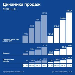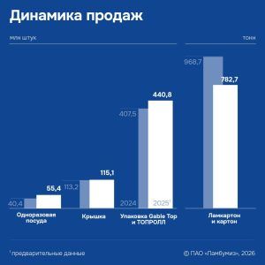 «Мы показали высокий темп роста производства и движемся в соответствии с намеченным планом развития: объем продаж основной продукции Gable Top и ТОПРОЛЛ в 2025 году достаточно уверенно превысил показатели прошлого года. Положительно мы также оцениваем динамику продаж направления одноразовой посуды, — сказал председатель Совета директоров Сергей Ботвин. — При этом «Ламбумиз» продолжает работу над стратегической задачей по выходу на рынок асептической упаковки. Нам удается сохранять запланированный темп реализации нашего инвестиционного проекта, и в операционных итогах 2026 года мы постараемся показать первые результаты отгрузок асептической упаковки».