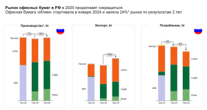 Экспорт офисной бумаги увеличился на 19%, что свидетельствует о растущем спросе на российскую продукцию за рубежом. При этом потребление на внутреннем рынке снизилось на 9%.